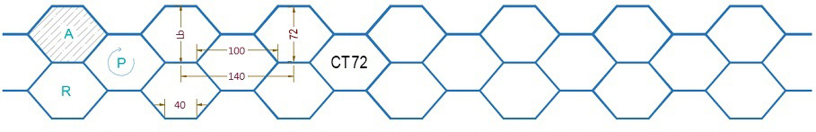 | CT72 | 11.10 m²/m³ | 9.92 m²/m³ | 18.88 mm | 267 mm | 5040 mm² | 72 mm +Th | 53 kg/m³ | 35 kg/m³ | 55 C° / 70 C° |